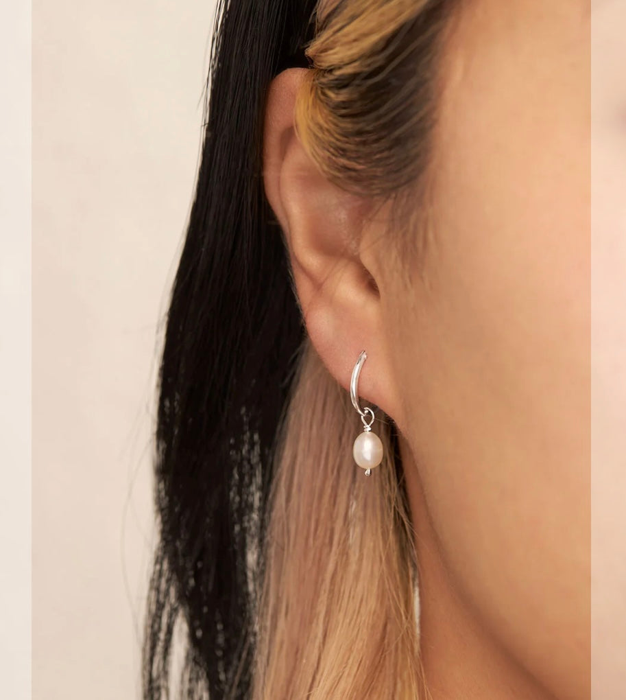 Delicate Pearl Sleepers Sterling Silver